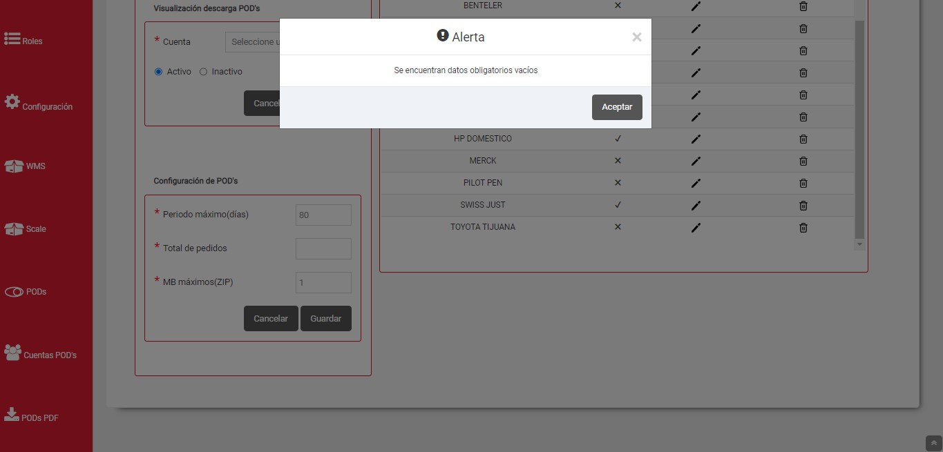 Existen motivos por los cuales un usuario no podrá realizar la configuración exitosa de la visualización de descarga POD's, de los cuales se encuentran los siguientes: