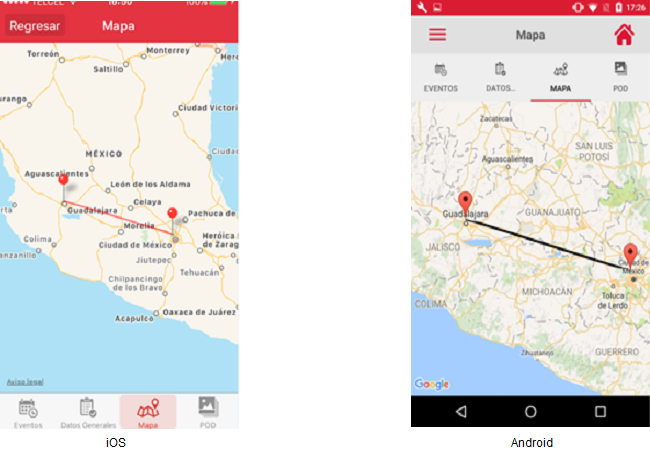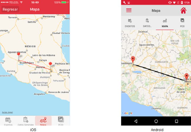 - El usuario deberá presionar el botón [Mapa] y esta acción mostrará un mapa donde se visualiza: